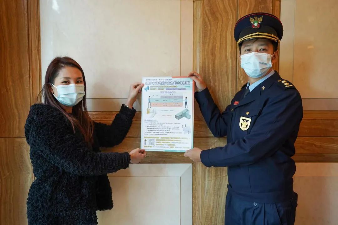 第15/2021號法律《樓宇及場地防火安全的法律制度》,即將於本年8月17日起正式生效實施 ,消防局持續到本澳各區進行新法推廣工作,於2月9日及11日派出人員前往氹仔市區一帶,走進區內屋苑進行宣傳,並張貼宣傳海報。